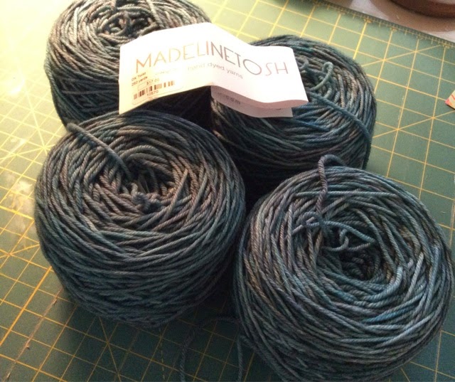 Speaking of Mad Tosh. Mr. Golfer and I will be traveling a bit this fall and I am getting projects lined up. I made a dash over there yesterday to look at possibilities and walked out with this beautiful teal!